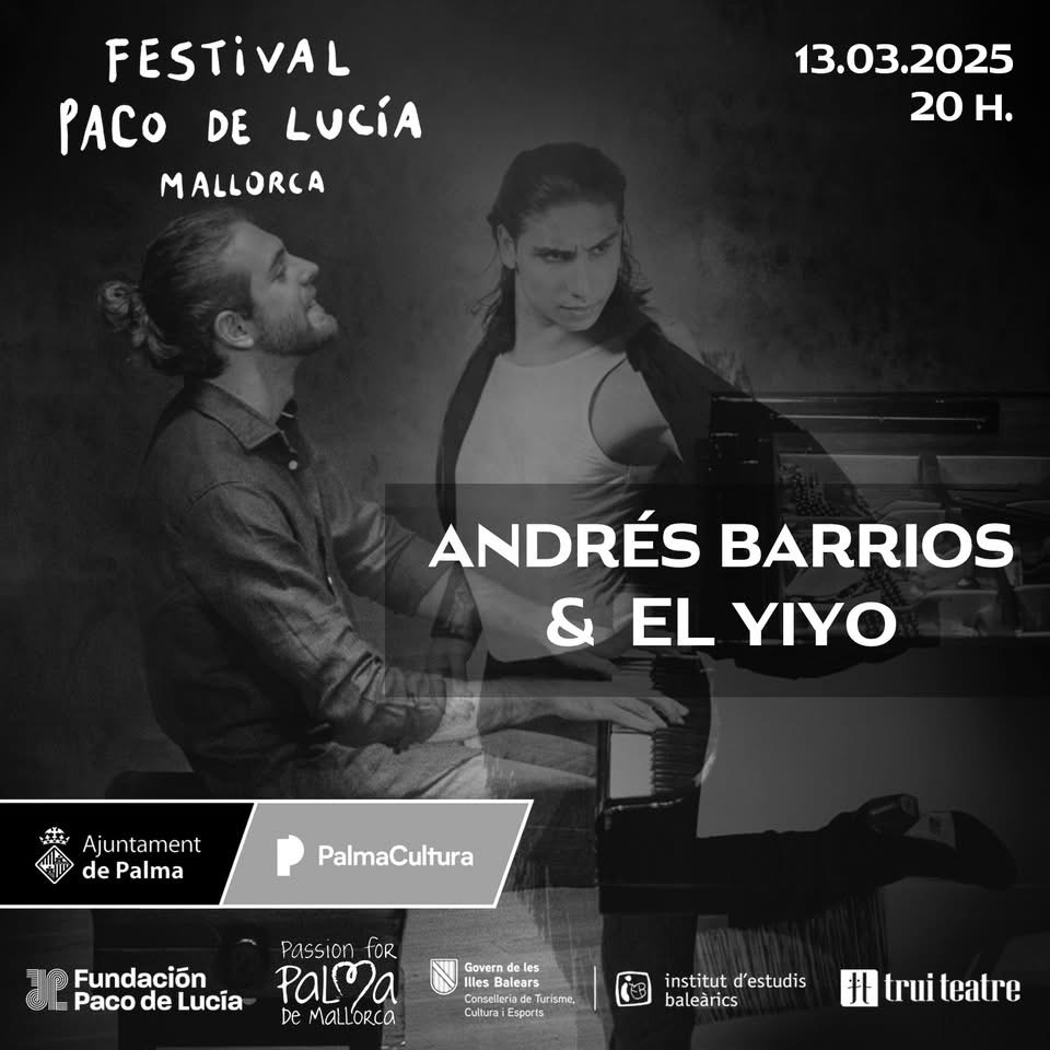 En la cuarta edición del Festival Flamenco, dedicada a Paco de Lucía, dos jóvenes artistas, Andrés Barrios y El Yiyo, le invitan a adentrarse en el magnético mundo del baile y la música flamenco. El talentoso bailaor El Yiyo y el pianista Andrés Barrios sumergirá al público en un mundo de profundas y sinceras emociones flamencas. La energía y elegancia de El Yiyo sobrepasa todos los límites, mientras que la musicalidad de Andrés Barrios abre nuevos horizontes a la danza española, combinándola con el jazz o la música latina. Sin duda, los artistas dejarán boquiabierto al público con su sensualidad y creatividad.