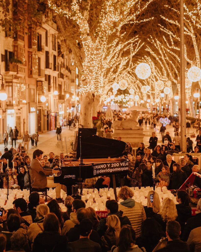 David Gómez wird wieder einmal im Zentrum von Palma mit dem Konzert „Le Voyage Du Piano“ (Die Reise des Klaviers) auftreten. Bei diesem einzigartigen musikalischen Projekt handelt es sich um ein Wanderkonzert: der Pianist spielt auf einem Podest mit 200 Kerzen und zieht durch die Straßen der Stadt. Während der Tournee wird er drei Stopps für 30-minütige Auftritte einlegen: Plaza España, Paseo del Borne und Plaza de la Reina.
