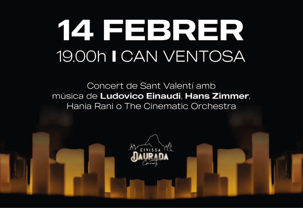 Die Organisatoren der Konzertreihe Eivissa Daurada (Goldenes Ibiza) laden Sie ein, den Valentinstag mit einem zauberhaften Konzert bei Kerzenlicht im Kulturzentrum Can Ventosa zu feiern. Auf dem Programm stehen Werke von Ludovico Einaudi, Hans Zimmer, Ennio Morricone, Jan Thiersen und anderen Komponisten. Dieser Abend wird ein unvergessliches Eintauchen in die Atmosphäre von Liebe und Romantik sein.