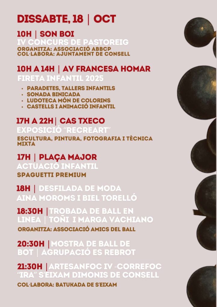 From 16 to 19 October 2025 the town of Consell will host the XXVIII Autumn fair and the XXII Wine fair — traditional events that unite local culture, cuisine and craftsmanship.