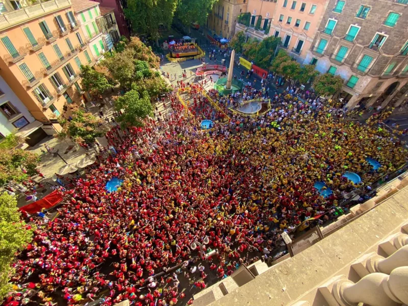 The modern interpretation of this conflict turned into a colourful city festival; participants split into two teams — the reds (Canamunt) and the yellows (Canavall) — and hold a huge water fight on the streets. Parc de la Mar and the foot of the Cathedral are the main venues for the celebration. Thousands of people show up with water guns and buckets to get splashed with water, reminding about the city’s past with peace and humour.