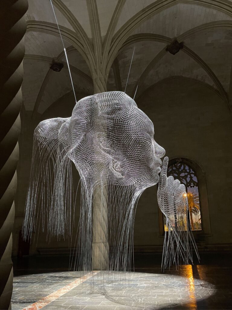 Jaume Plensa ha creado una impresionante instalación en La Lonja de Palma, uno de los edificios más emblemáticos de la arquitectura gótica de la isla.Su exposición presenta esculturas a gran escala en el estilo característico de Plensa de figuras y cabezas que transmiten emociones universales y sentimientos interiores.