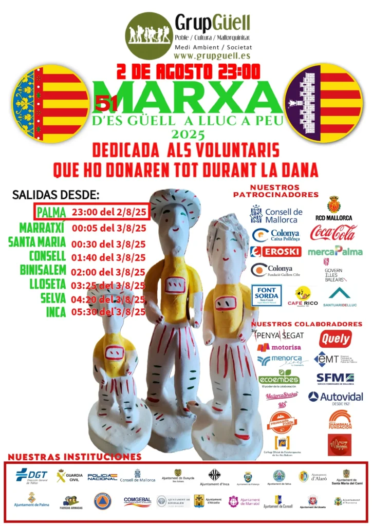 La peregrinación 2025 está dedicada a los voluntarios de Mallorca que ayudaron durante la catástrofe natural de la DANA en Valencia, en agradecimiento por su dedicación y solidaridad.