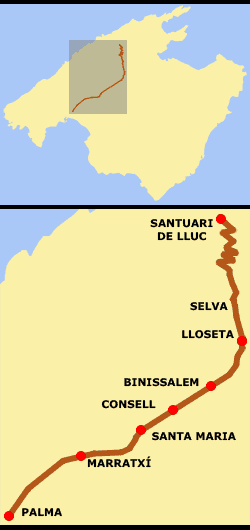 La ruta pasa tradicionalmente por Marratxi, Santa Maria, Consell, Binissalem, Lloseta, Selva e Inca. La distancia es de 48 kilómetros y se tarda una media de 8 a 13 horas en completarla. Toda la ruta transcurre por carretera asfaltada: parte del recorrido es llano, parte es una subida de montaña de hasta 800 metros sobre el nivel del mar. En los puntos intermedios hay tiendas con agua y tentempiés, puestos médicos, y se organiza el transporte para los que quieran terminar el camino antes.