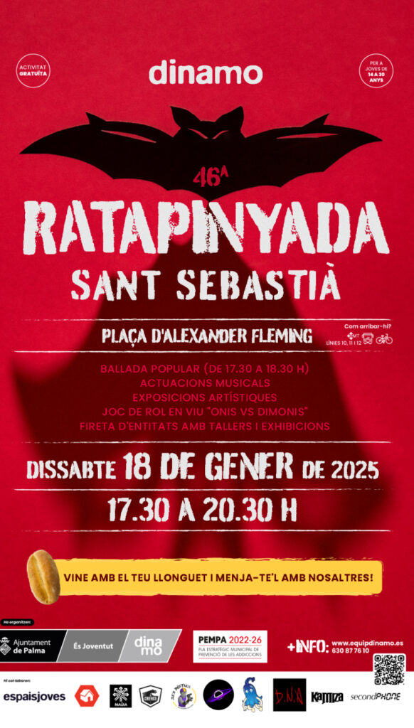 “Праздник летучей мыши” (Ratapinyada) — это молодежное мероприятие, которое ежегодно проводится в Пальме в рамках праздника Святого Себастьяна. В 2025 году оно пройдет уже в 46-й раз на площади Александра Флеминга.