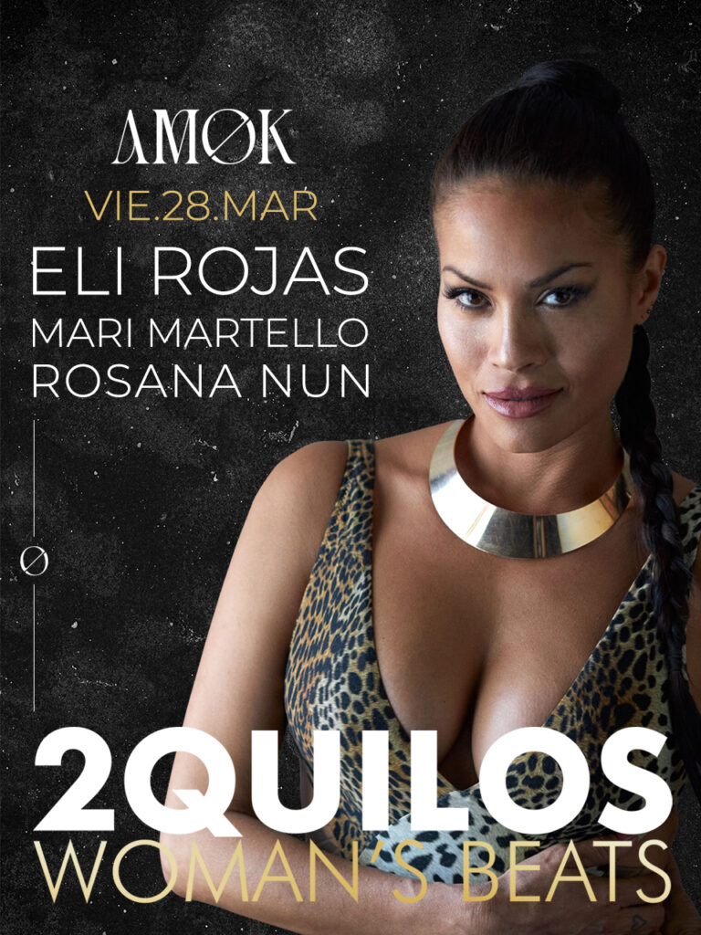 2 Quilos – Women’s Beats — это уникальная вечеринка в ночном клубе AMØK, где соединяются женская энергетика и завораживающая музыка. В центре внимания — искусство женского диджейства: на сцене выступят талантливые Eli Rojas, Mari Martello и Rosana Nun. Каждая из них представит свою авторскую подборку треков в стилях Afro House, Afrobeat и House, что позволит создать вечер, наполненный ритмами, способными увлечь даже самых требовательных меломанов.